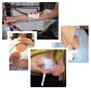 There are two types of access for hemodialysis. You will have an procedure to put a tube at your neck/chest area; or you will have an operation on your arm to form a fistula for needle insertion. You may see lumps on your arm at the needle insertion site. You may see lumps on your arm. A tube coming out of the chest area is more common for in-centre hemodialysis (ICHD).